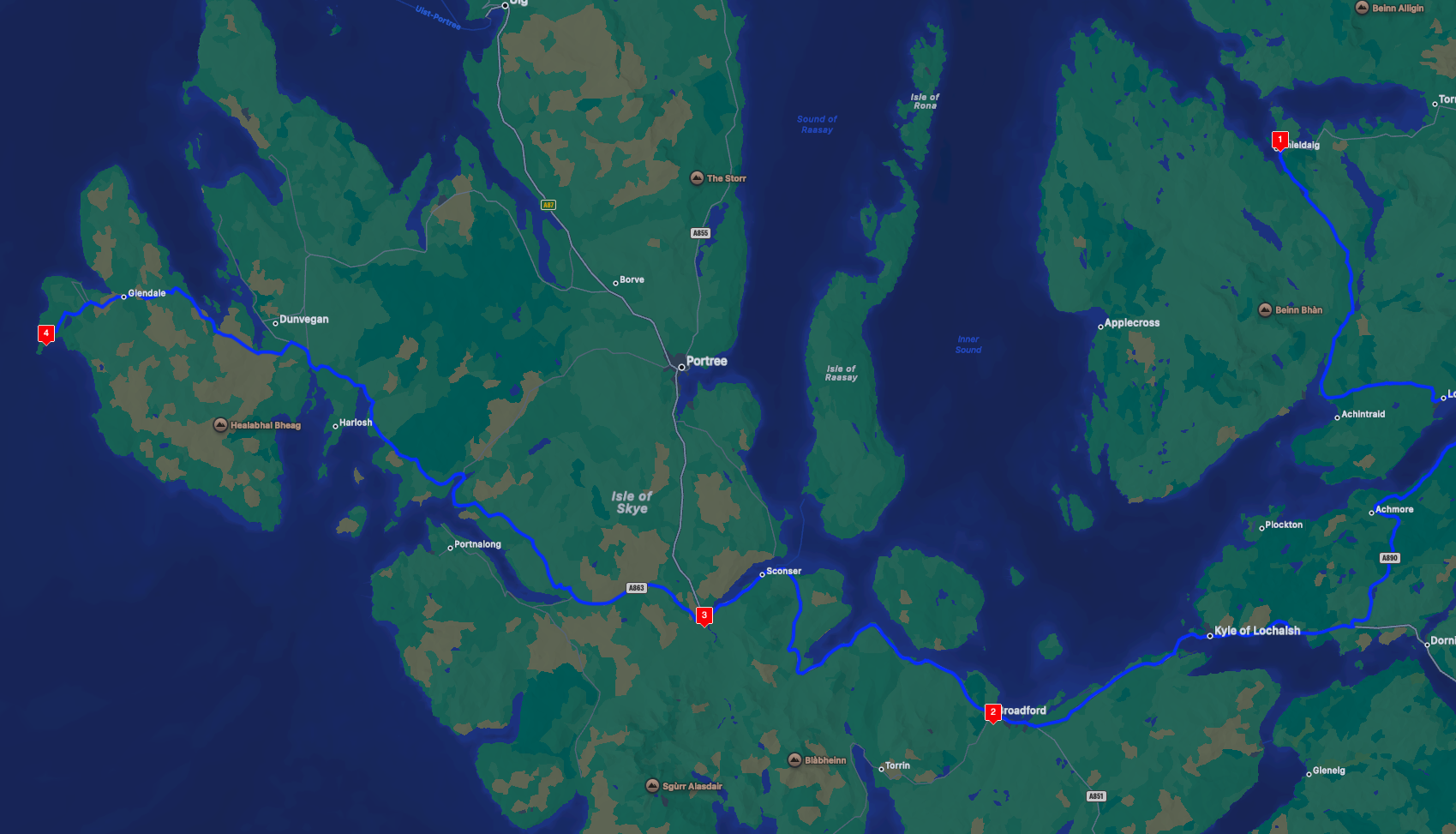 Mit der Isle of Skye verbindet mich mittlerweile ein sehr zwiespältiges Gefühl. Wir waren 1993 mit den Motorrädern dort. Zu dem Zeitpunkt gab es die Brücke noch nicht, so dass die Insel nur mit Fähre erreichbar war. Ich bekomme nicht mehr zusammen wo wir damals überall waren. Auf jeden Fall sind wir von Mallaig nach Armadale rüber und hatten auch eine Nacht auf einem Campingplatz. ich erinner mich noch, dass ich mich nachts fragte wer mir die ganze Zeit ein Brett ins Gesicht drückt bis ich kapierte, dass es stürmte und die Zeltplane Kontakt mit mir aufnahm. Damals war die Isle of Skye etwas ganz Fremdes und Abgelegenes. Auch 2005, als ich das erste Mal nach dem Motorradtrip wieder dort war, war die Insel noch etwas Besonderes, auch wenn die Brücke viel Tagestourismus auf die Insel spülte.
