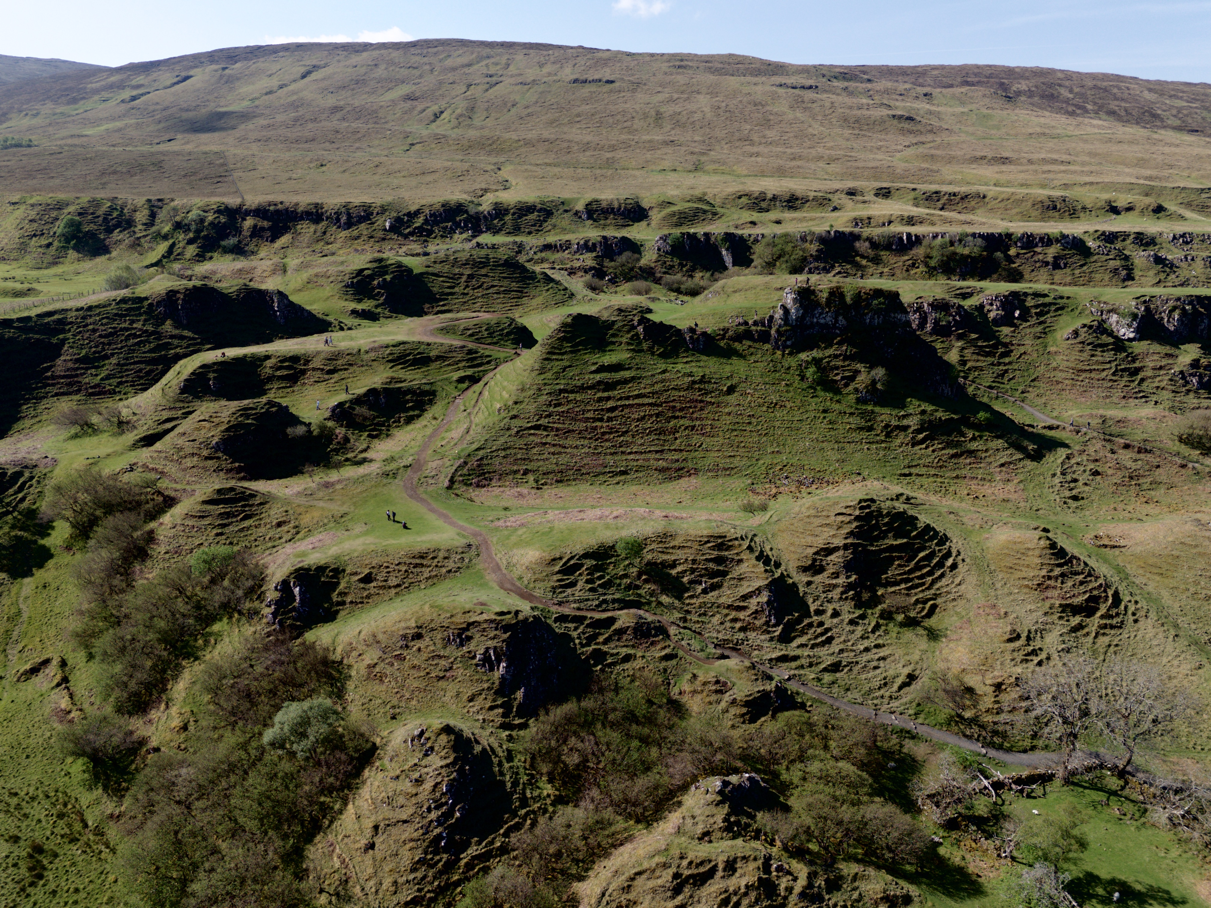 Da es "nur" bis Morvich gehen soll, also rund 3 Stunden Fahrzeit, gab es noch einen Abstecher zum Fairy Glen östlich von Uig. Eine der bekannteren Sehenswürdigkeiten auf der isle of Skye, dementsprechend gut besucht und mit Parkscheinautomaten versehen. Das ist auch so eine Anpassung an den wachsenden Touristenandrang. Nur wenn man mal dringend müsste, muss man das vorher schon eingeplant haben...