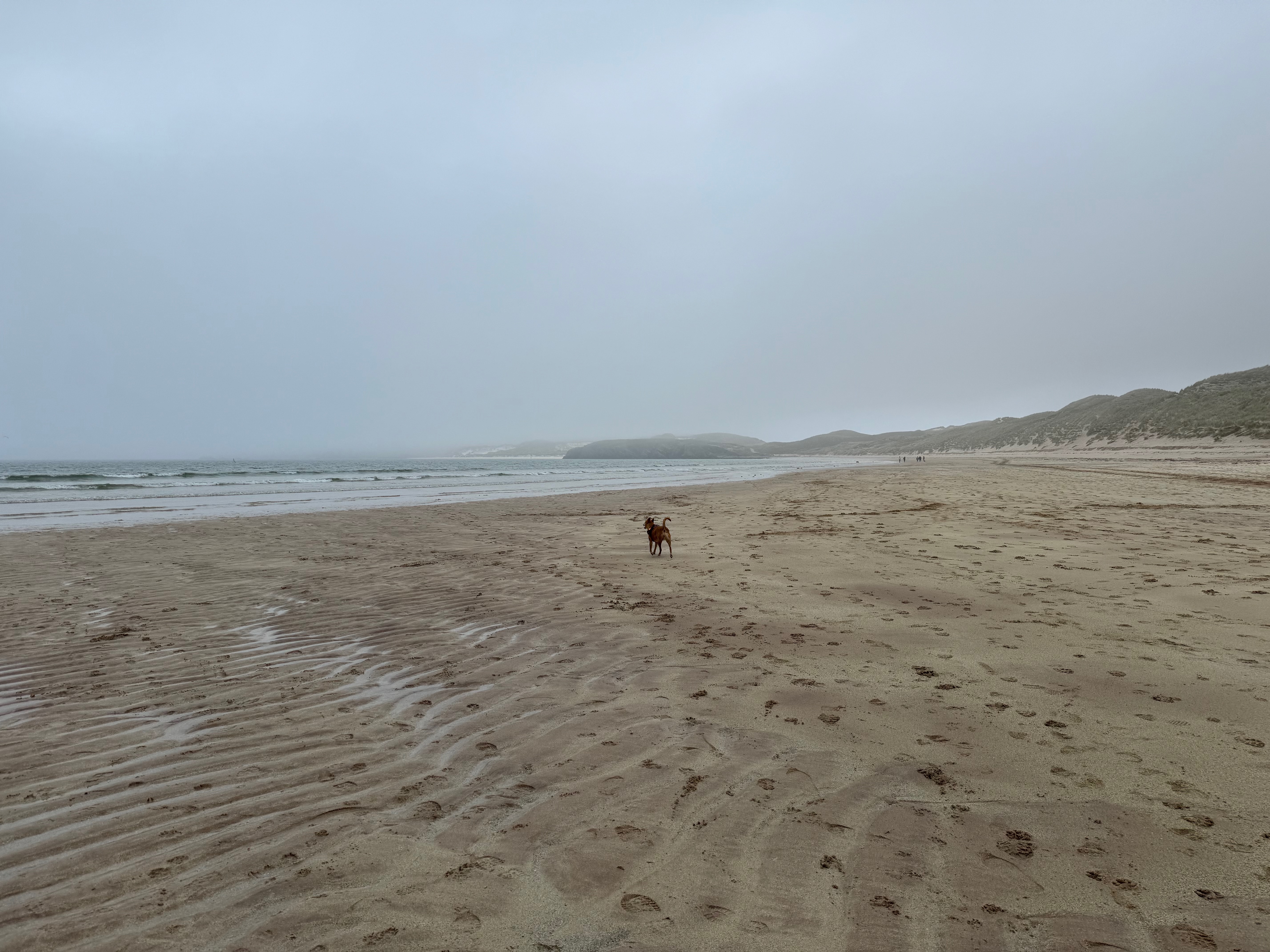 Sango Sands Oasis begrüßte uns mit mehr Wolken als Sonne, aber trocken. Damit kann man gut leben und die Aussicht vom Standplatz aus ist auch immer gut, egal wie das Wetter ist (ok, bei dichtem Nebel kann man das nochmal hinterfragen...). Ich hatte ja zwei Nächte geplant in der Hoffnung, dass man einen Tag mit viel Zeit am Balnakeil Beach verbringen kann, aber dazu war das Wetter am zweiten Tag dann doch nicht soo einladend. Also sind wir zur Smoo Cave gewandert. Dort macht es sicher Spaß mit dem Boot das Höhlensystem zu erleben, aber mit den Hunden konnte ich das nicht machen,. Also blieb nur die Besichtigung der "normalen" Höhle. Auf dem Rückweg fiel uns dann noch der John Lennon Memorial Garden ins Auge. John Lennon hat wohl als Kind hier Sommerferien verbracht.