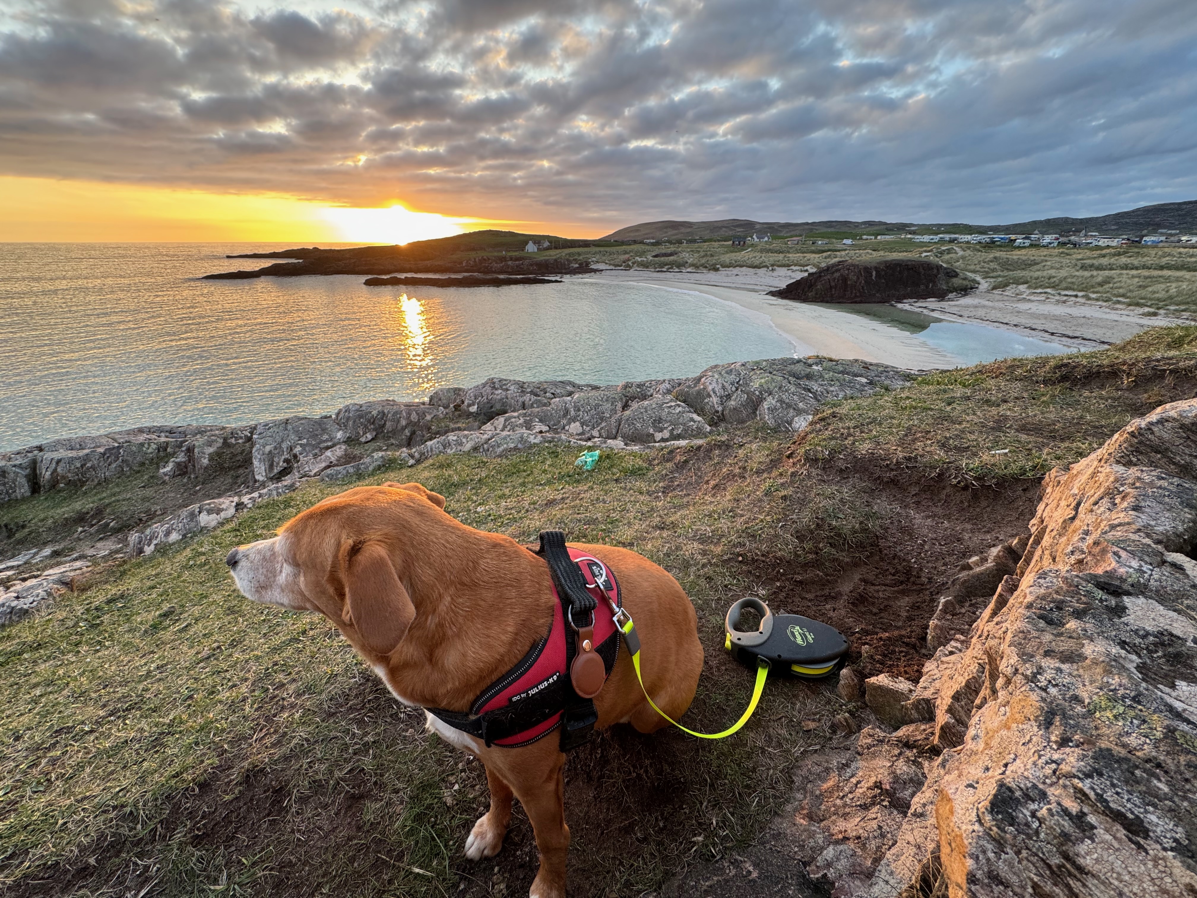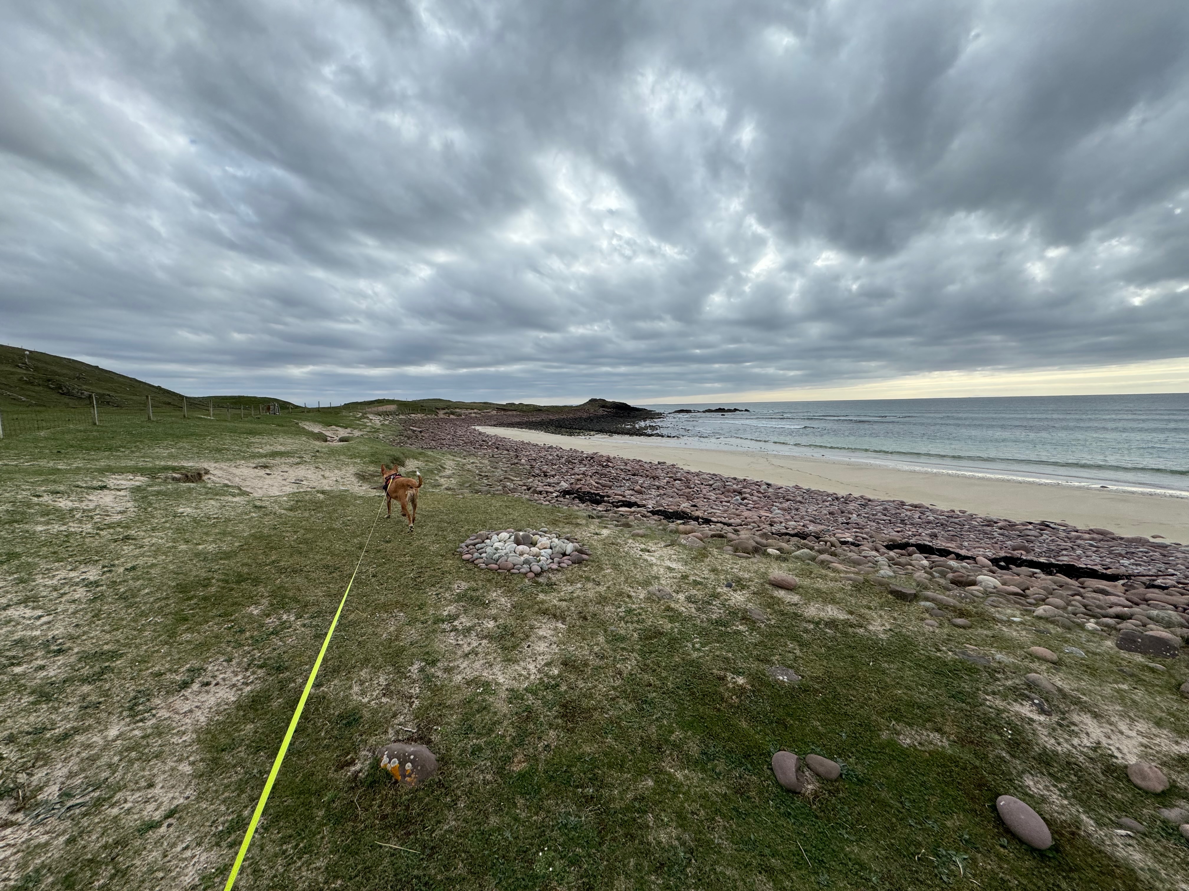 Als wir uns auf dem Campingplatz eingerichtet hatten und die Frage nach dem Abendessen ja auch schon geklärt war, ging es noch auf Wanderschaft zu den Clashnessie Falls. Ein recht hoher Wasserfall am Ende eines Lochverbundes wo sich das Wasser ein paar Meter in die Tiefe wirft. Wieder zurück warf ich dann den Grill an und wärmte meine Pies auf. Das Wetter wurde immer besser und so unternahmen wir noch einen Spaziergang zum Clachtoll Beach und machten ein paar Aufnahmen mit der Drohne.