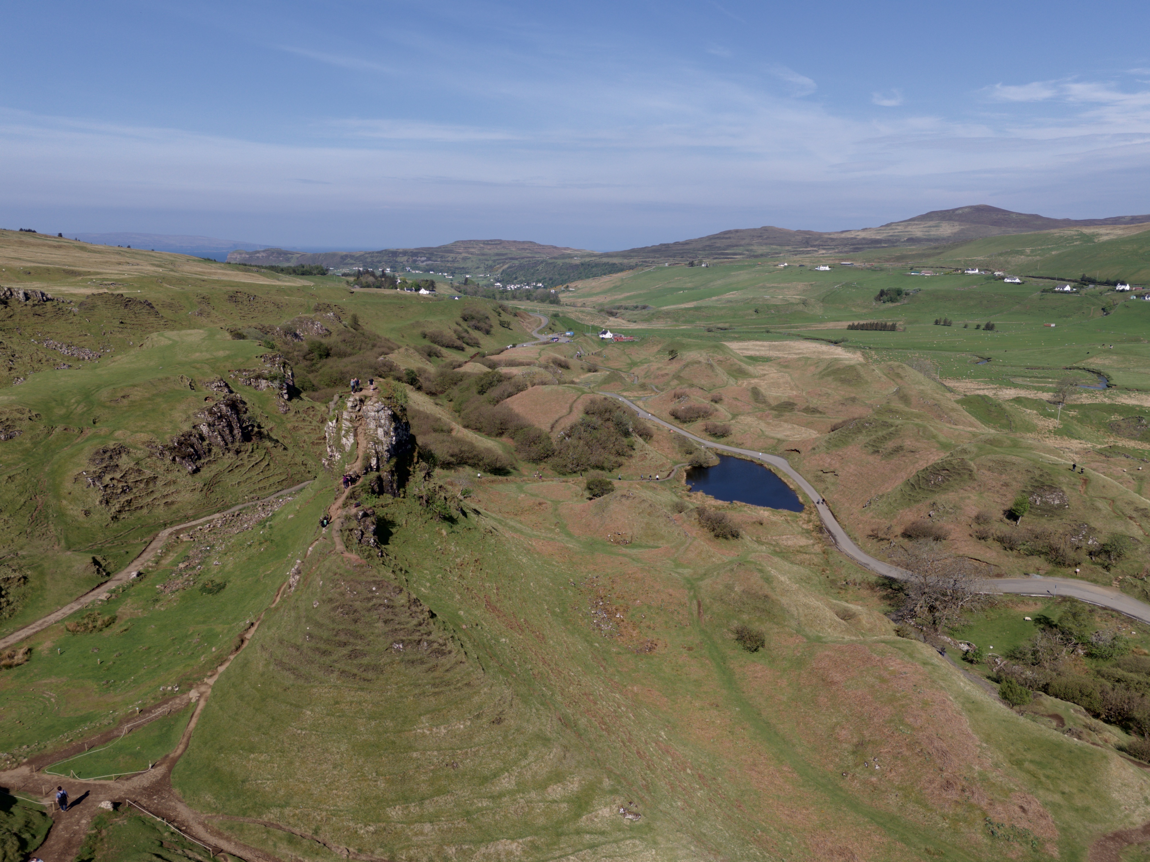 Da es "nur" bis Morvich gehen soll, also rund 3 Stunden Fahrzeit, gab es noch einen Abstecher zum Fairy Glen östlich von Uig. Eine der bekannteren Sehenswürdigkeiten auf der isle of Skye, dementsprechend gut besucht und mit Parkscheinautomaten versehen. Das ist auch so eine Anpassung an den wachsenden Touristenandrang. Nur wenn man mal dringend müsste, muss man das vorher schon eingeplant haben...