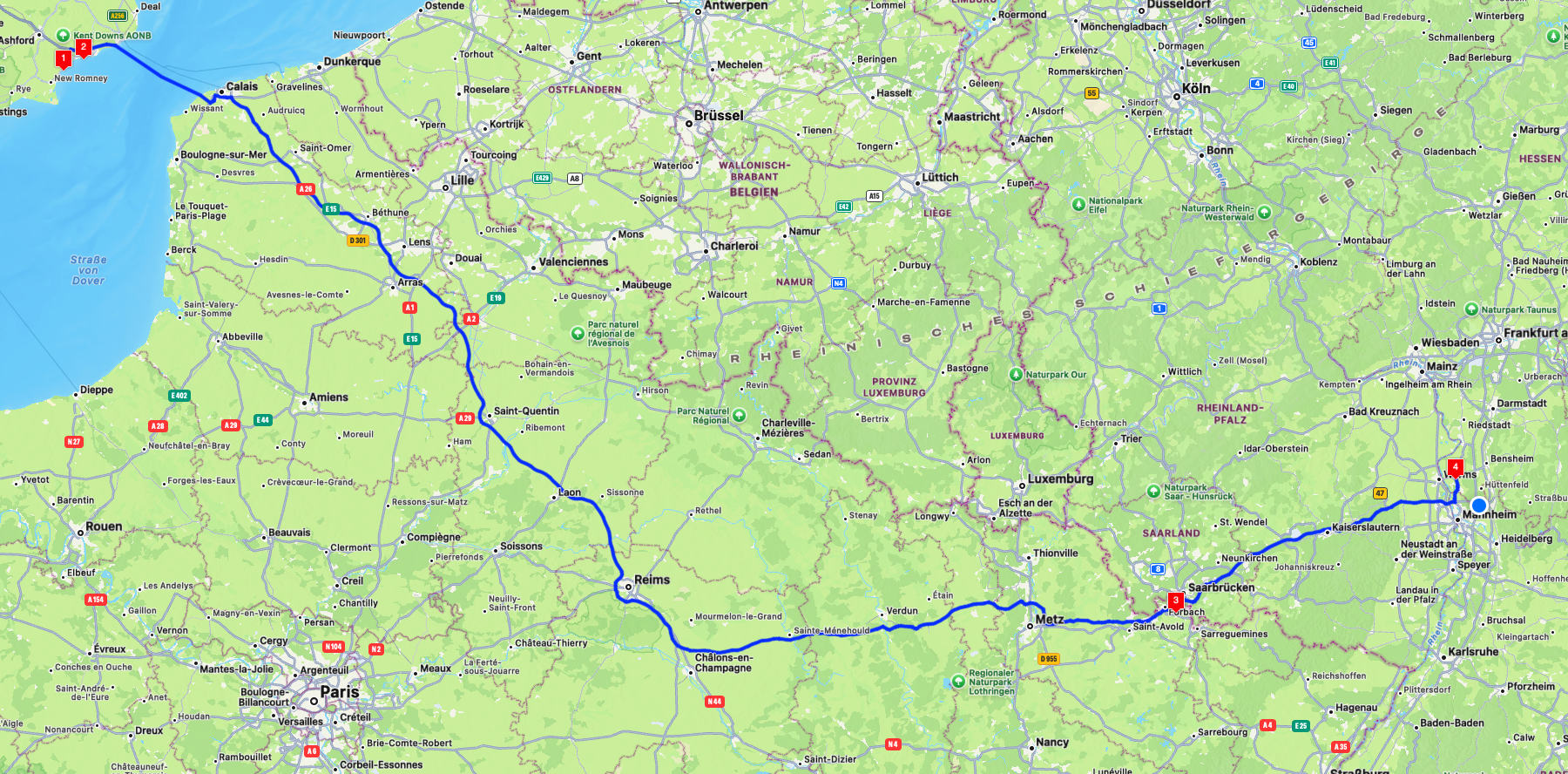 Keine Bilder mehr. Es ging einfach am frühen Morgen von Daleacres zum Tunnel, wo es das erste Mal zu Verzögerungen kam und dann auf dem Festland durch Frankreich zurück nach Hause.