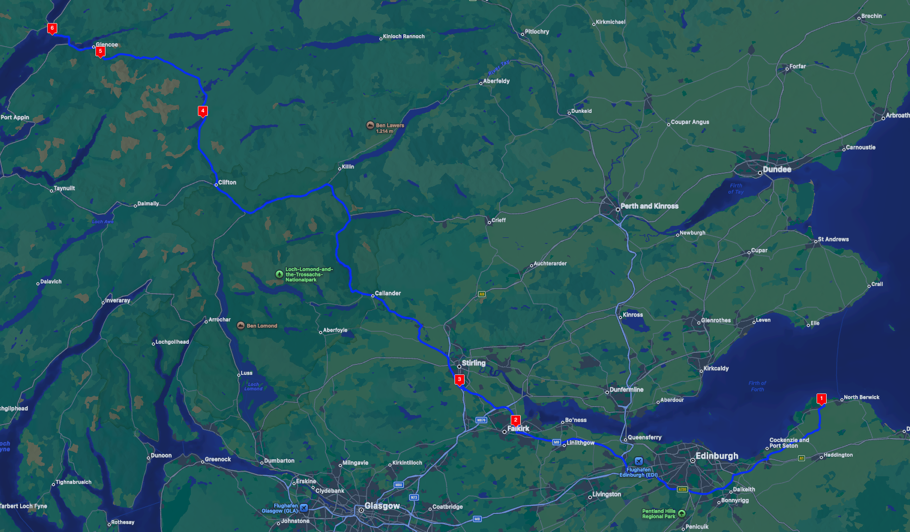 Nach zwei Tagen Fahrt mit langen Strecken war für heute eine kürzere, wenn auch nicht wirklich kurze Strecke geplant. Da für die rund 250 km genügend Zeit zur Verfügung stand haben wir den Weg genutzt und ein paar kleine Abstecher gemacht und uns einige Dinge auf dem Weg angeschaut. Auf dem Plan standen zum einen die Kelpies, die großen metallenen Wassergeister/Pferde, die ich jeedsmal vom Auto aus sehen konnte aber noch nie direkt dort war, desweiteren wollte ich auch mal nach Bannockburn, wo Robert the Bruce den Engländern den Hintern versohlt hat und letztlich zur Unabhängigkeit Schottlands führte. Von Bannockburn geht der Weg an Stirling vorbei in die Highlands. Eine Route, die mittlerweile bekannt sein dürfte: Callander, Crianlarich, Tyndrum, Loch Tulla und dann ins Glencoe. Hinter Ballchulich noch über die Brücke wo der Loch Linnhe auf den Loch Leven stößt und dann noch ein paar Kilometer zum Bunree Campingplatz.