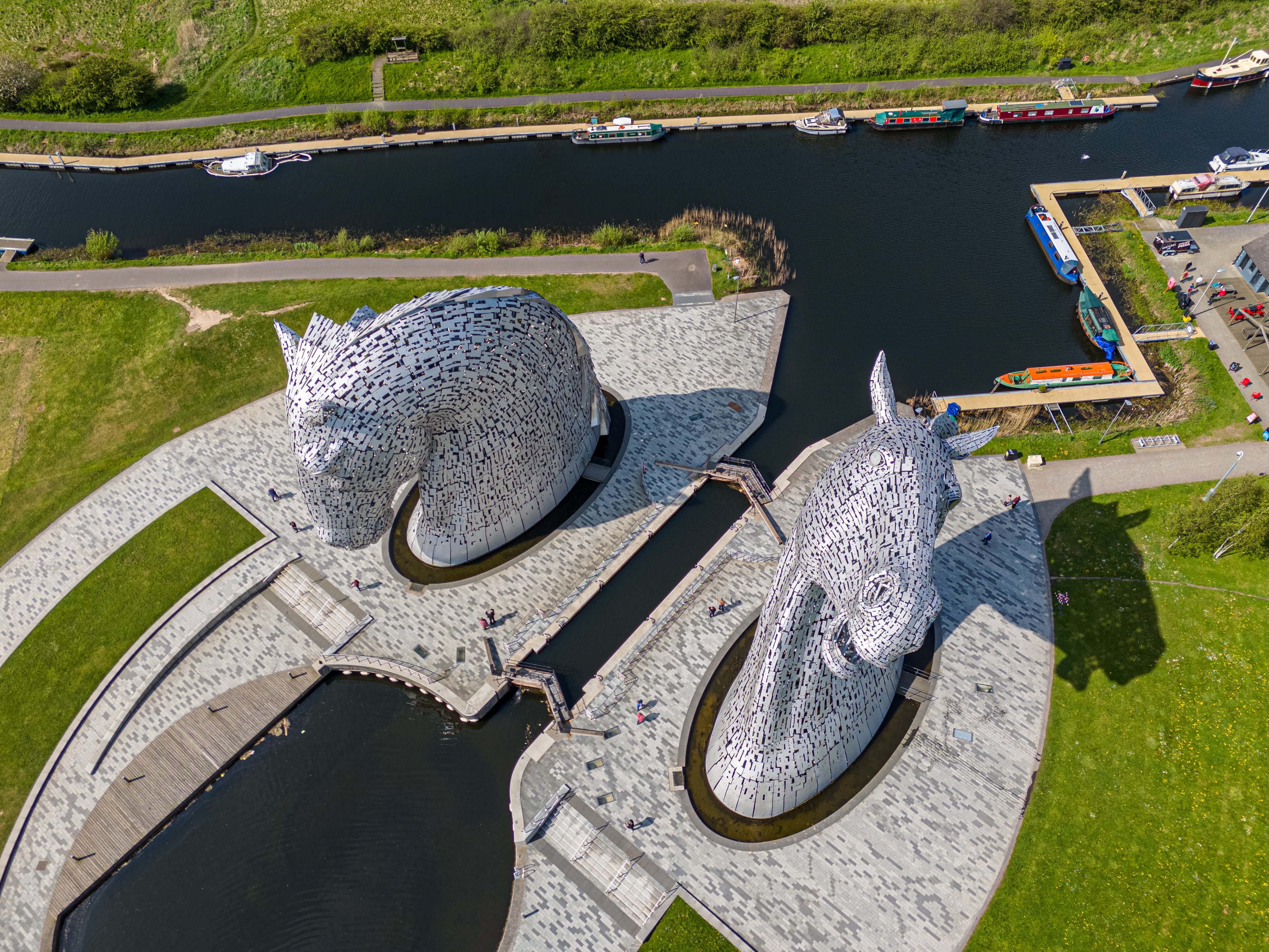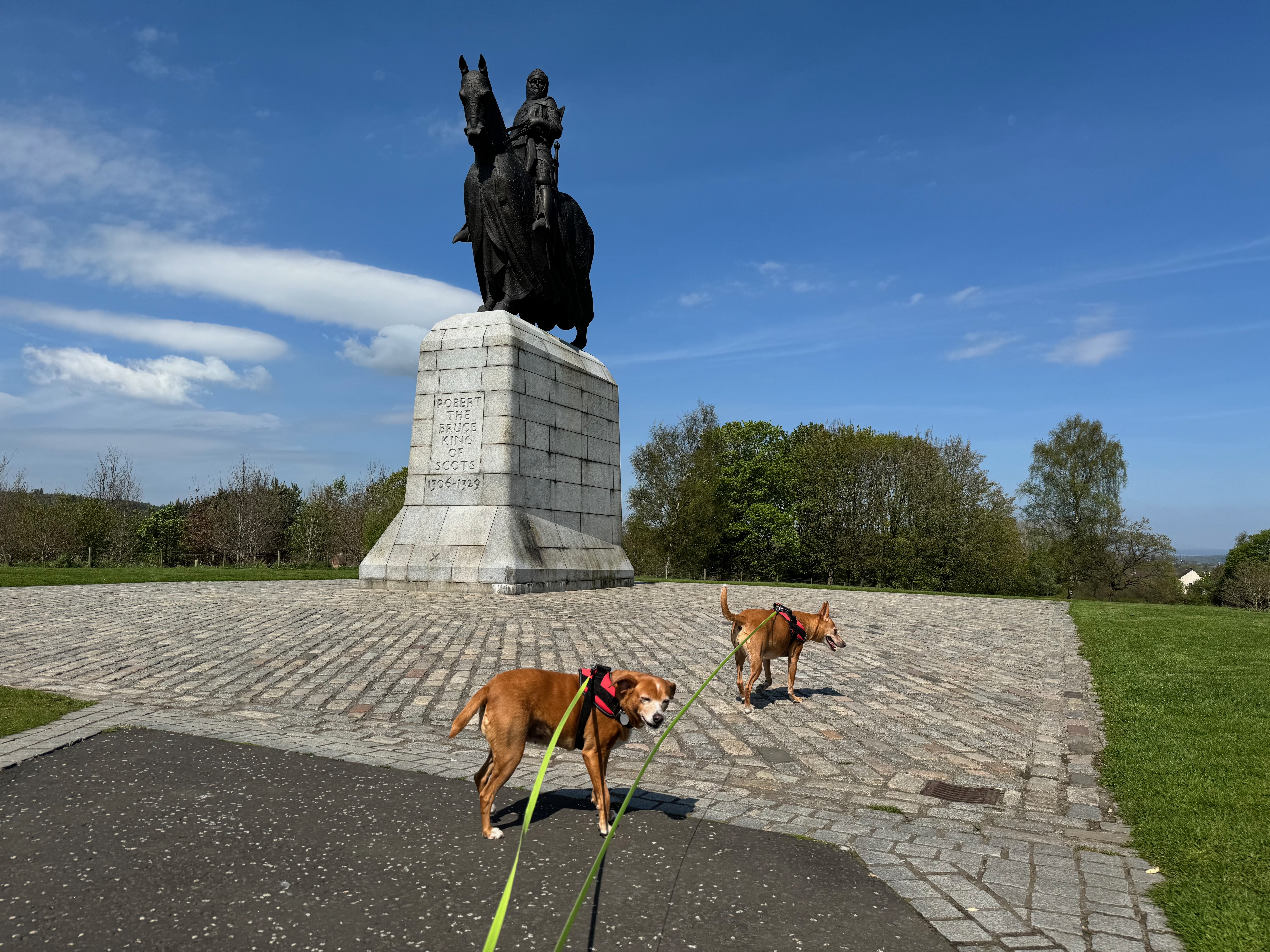 Nach einer weiteren erholsamen Nacht verabschiedeten wir uns vom Yellowcraig Campingplatz und machten uns auf den Weg in Richtung Kelpies. Natürlich muss man dort mittlerweile auch für das Parken bezahlen. Da sind die Schotten ganz fortschrittlich, der Parkplatzmensch hielt ein Lesegerät an einem Stock in das funThom. Auf die Frage: "Do you accept Apple Pay" bekam ich die lapidare Antwort: "We accept any pay...", nice one. Also 5 Pfund abgedrückt, geparkt und auf den Weg zu diesen Stahlungetümen gemacht. Ich habe auch brav gefragt ob man mit der Drohne fliegen darf und das war OK. Ich hätte mir auch gerne noch das Falkirk Wheel angesehen, aber das lag zu weit vom Schuss, vielleicht ein anderes Mal. Von den Kelpies ging es nach Bannockburn, wo wir uns das Schlachtfeld angesehen hatten auf dem 1314 Robert the Bruce einen wichtigen Sieg auf dem Weg zu Schottlands Unabhängigkeit erzielen konnte.