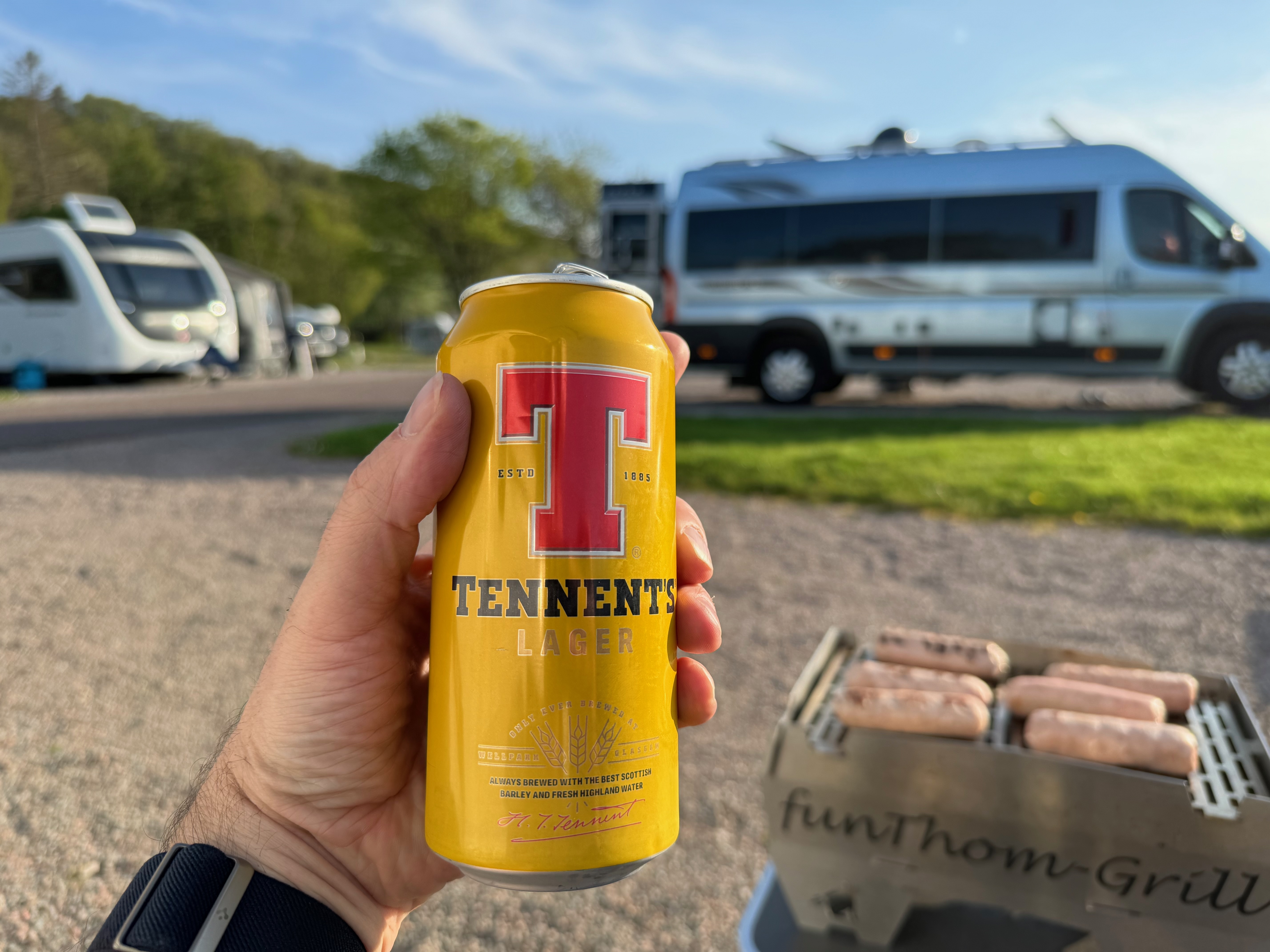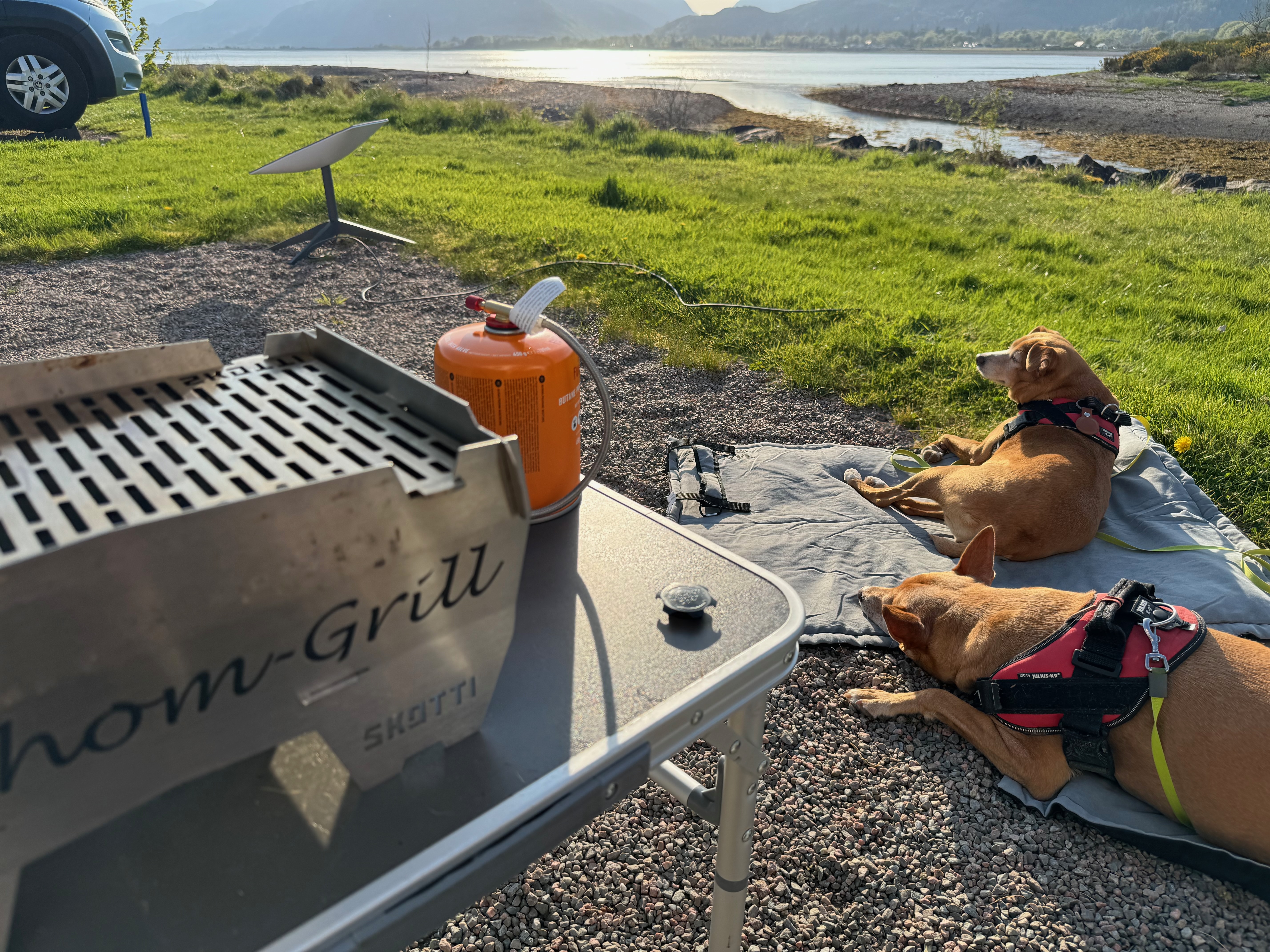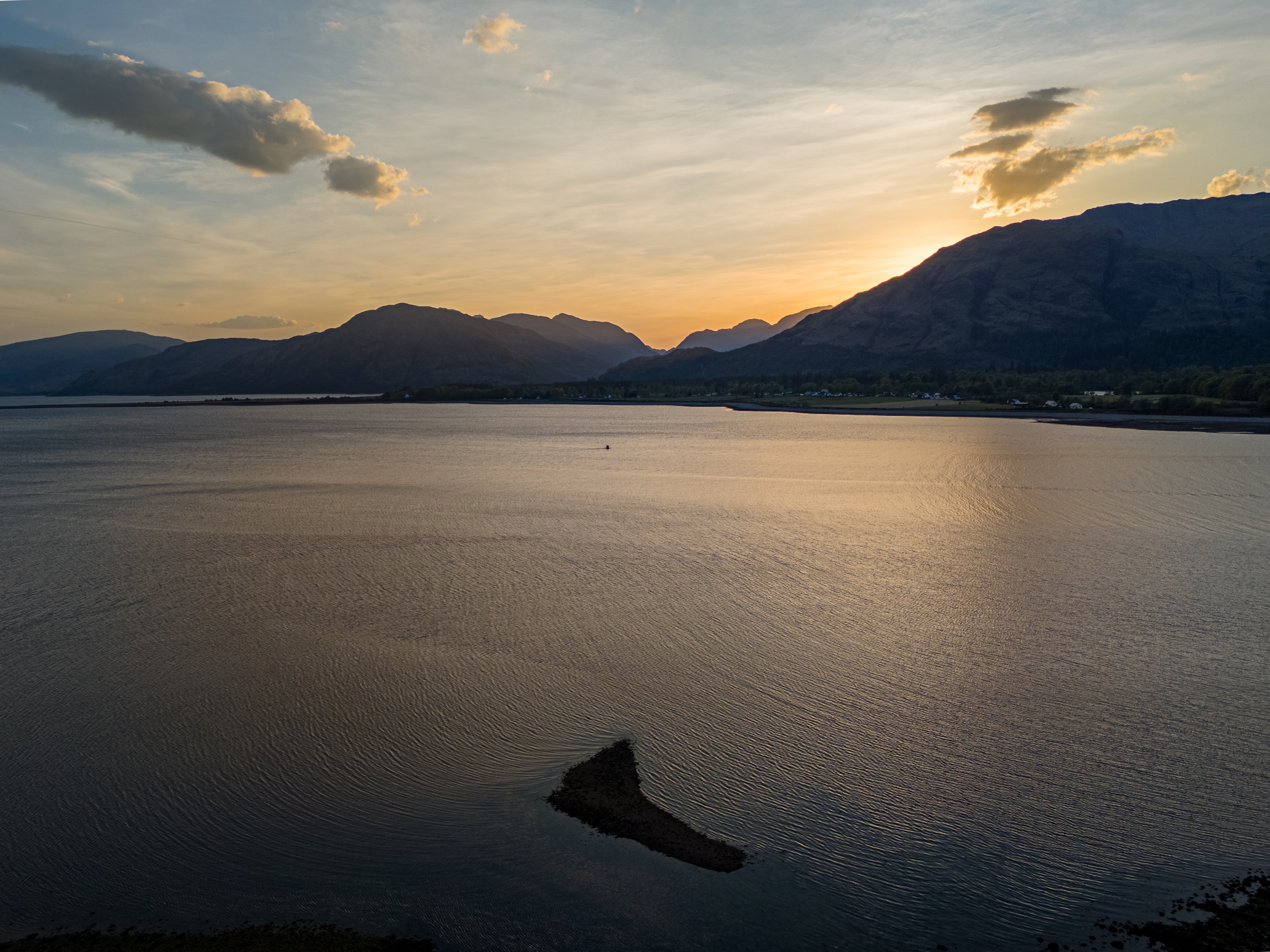 Und vom Glencoe aus war es dann auch nicht mehr weit bis zum Bunree Campingplatz. Diesen hatte ich 2023 zum ersten Mal besucht und seine Lage am Loch Linnhe mit Blick auf die Berge empfand ich als sehr schön. Also wieder dort hin, das Wetter war gut und nach einem schönen Spaziergang konnte der Grill ausgepackt, ein wenig mit der Drohne geflogen und schließlich noch ein paar Bilder vom Strenenhimmel gemacht werden. Damit endete dann auch schon Tag 3.