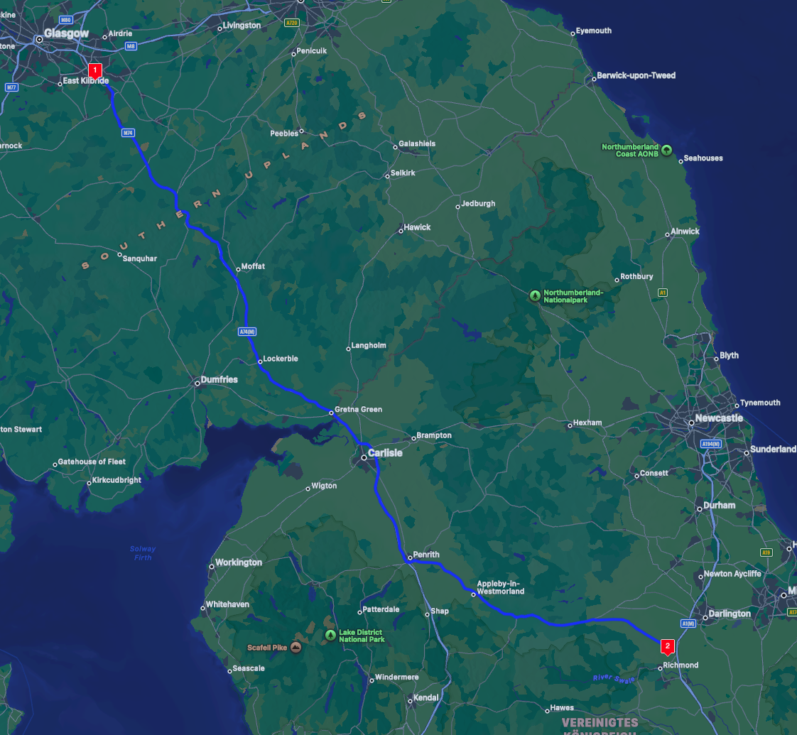 Wir verabschieden uns heute von Schottland und statten England einen Besuch ab. Jetzt geht es nur noch in südliche Richtung