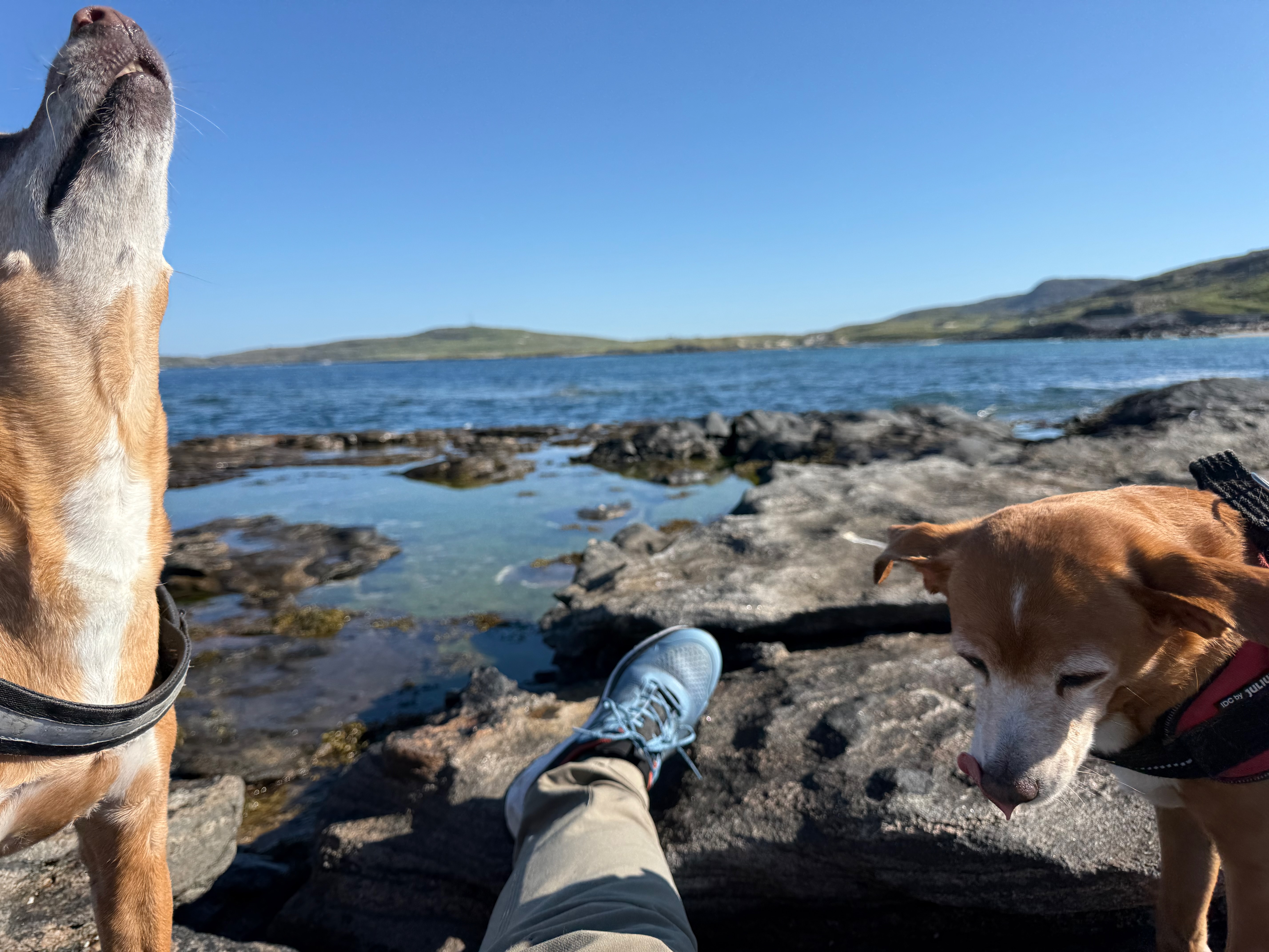 Nach einer ruhigen und sehr erholsamen Nacht konnten wir den zweiten Tag in aller Ruhe angehen. Wir machten einige längere Spaziergänge. Leider konnte ich die eigentlich geplante Wanderung nicht machen, da viele der Strecken über Weideland führen und gerade erst die Lämmer und Kälber zur Welt gekommen waren und daher die Crofter den Zugang zu den Weiden für Hunde untersagten. Das ist verständlich, wenn auch schade. Also gab es ein paar kleinere aber nicht minder schöne Wanderungen.