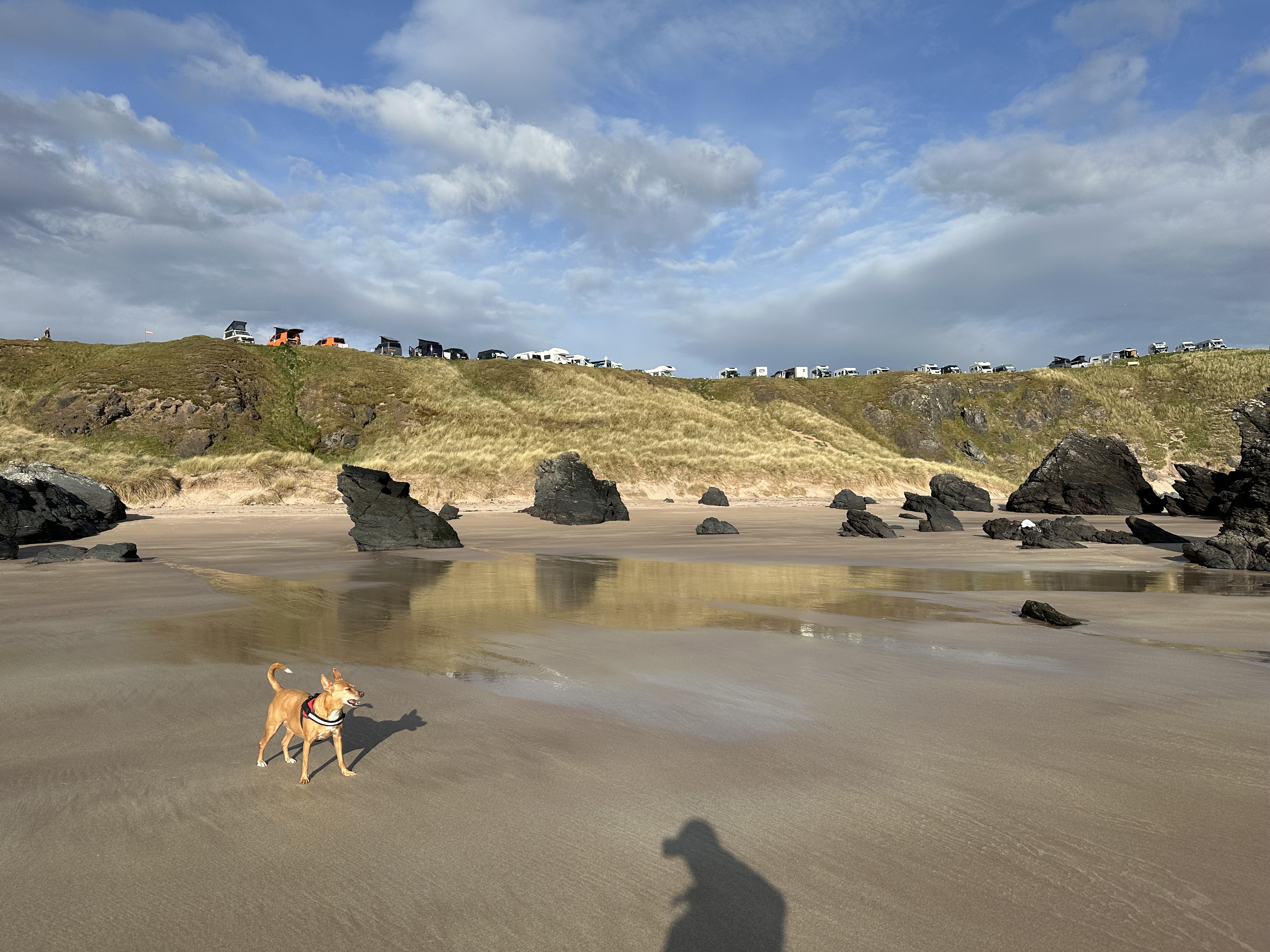 Heute soll es dann an die Nordküste gehen. Wieder ein Platz, den wir schon kennen und sehr mögen. Sango Sands Oasis liegt direkt an der Steilküste und bietet einen schönen kleinen Strand am Fuß, also oben campen unten entspannen am Strand. Weiterhin ist dieser Platz gut gewählt, da direkt nebenan ein kleiner Laden ist in dem man Vorräte kaufen kann und nach einer kleinen Wanderung mehr oder weniger querfeldein landet man am Balnakeil Beach. Ein Strand, der bis jetzt mein absoluter Favorit ist. Vielleicht ändert sich das mit dem Besuch auf den Hebriden.