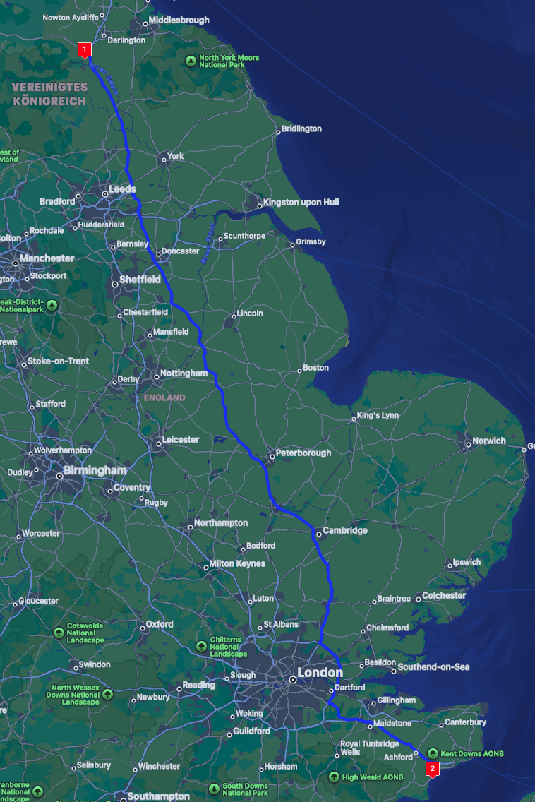 Daleacres Campsite hat sich in den letzten Jahren als letzte Station vor dem Tunnel bewährt. Da ich den Kanal gerne am frühen Morgen unterquere und dann den Tag für die letzte Etappe der Rückfahrt vor mir habe, bietet es sich an einen Campingplatz in unmittelbarer Näher zum Tunnel zu haben. Daleacres ist nur ca 12 km vom Tunnel entfernt und von dort kann ich auch sehr früh los, so dass wir gegen 7:20 durch den Tunnel durchkommen.